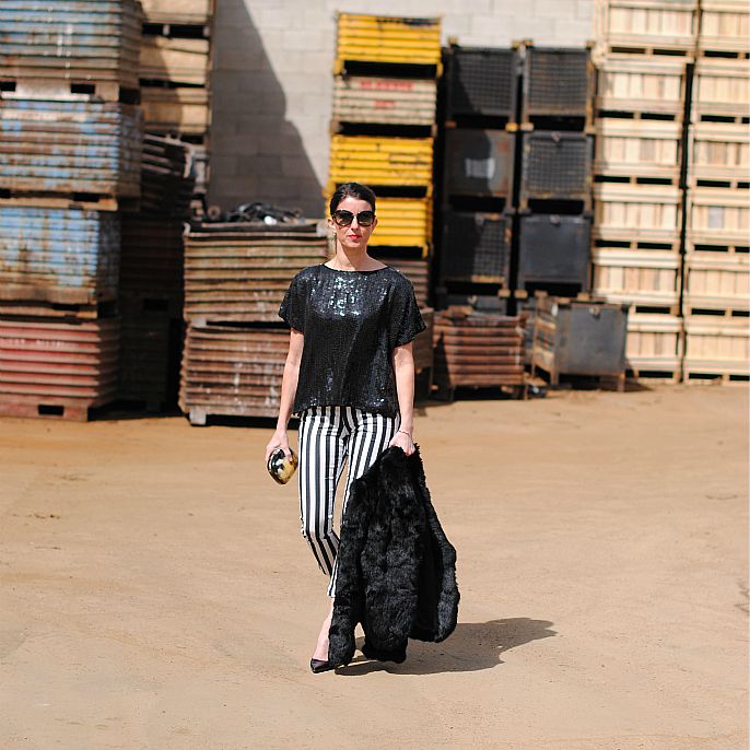Jacket (thrifted, Value Village Thrift, Windsor, ON. $35). Top (vintage, Public Butter, Toronto, ON $10). Pants (H&M) last seen here. Shoes (Nine West). Resin clutch (vintage, Jones & Company, Windsor, ON. $38) last seen here. Sunglasses (Prada).